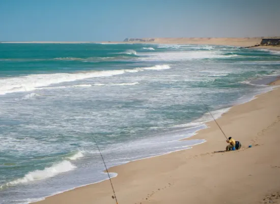 Depuis ce paradis isolé au bout du monde, l’aventure s’offre à vous dans toutes les directions. Glissez sur les lagons turquoise en kitesurf, observez des dauphins danser dans les vagues, puis partez vers l’intérieur des terres, là où les dunes immaculées imposent un silence plus éloquent que les mots. Endormez-vous dans un camp de luxe sous des constellations si brillantes qu’elles semblent à portée de main, et réveillez-vous au lever du soleil, qui peint le sable de nuances dorées et rosées.